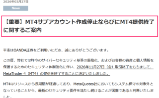 【OANDA証券のMT4が終了】概要とスケジュールを解説します!