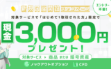 CFD口座の新規開設+新規取引1回の条件を満たすだけで、もれなく3,000円をキャッシュバック!