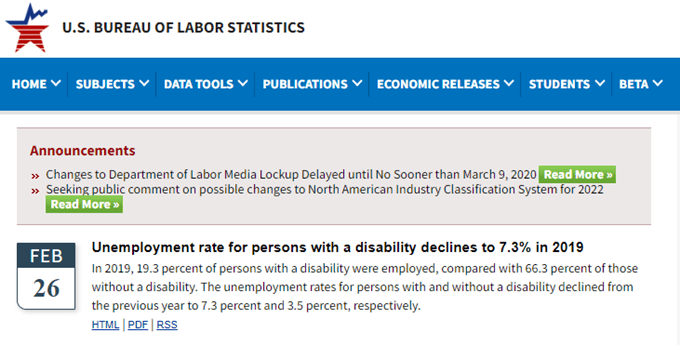 米国の雇用統計はアメリカ労働省のWebサイトから確認ができます。