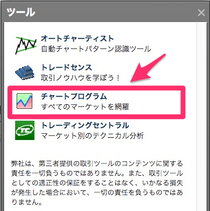取引プラットフォームのツールからチャートプログラムをクリック。