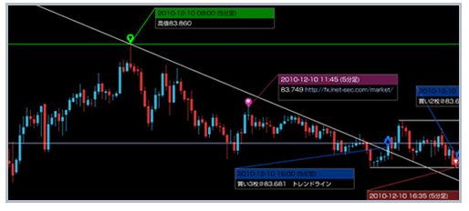 複数の通貨ペアを重ねて表示できたり、自身のトレードを<取引分析機能>で詳細に、かつグラフ化などによって視覚的に確認することも可能。
