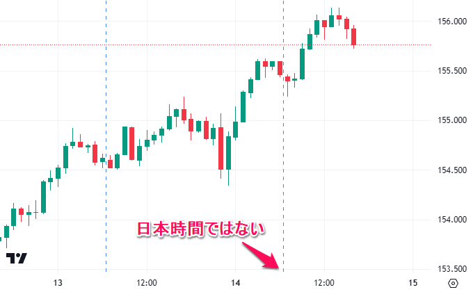 1時間足以下は0:00ごと、4時間足は週ごと、日足は月ごと、週足と月足は年ごとに縦線が引かれます。