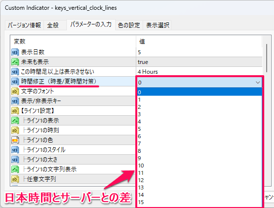 日本時間とサーバー時間との差になります。1本目のローソク足時刻と日本時間との差を計算して入力してください。