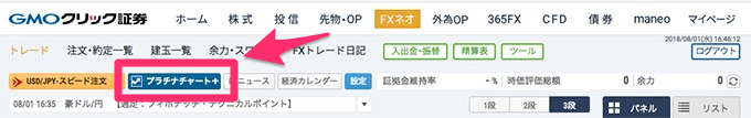 まずはGMOクリック証券にてログインし、新FXネオサービスから「プラチナチャート+」を起動させてください。