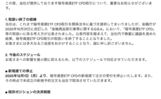 ビットコインETF(暗号資産ETF)取り扱い終了2025年11月17日、IG証券が暗号資産ETF CFD取引の取り扱い終了を発表しました。下記は同社公式サイトのニュースリリースより抜粋したもの。取扱終了はIBIT(iシェアーズ ビットコイン...
