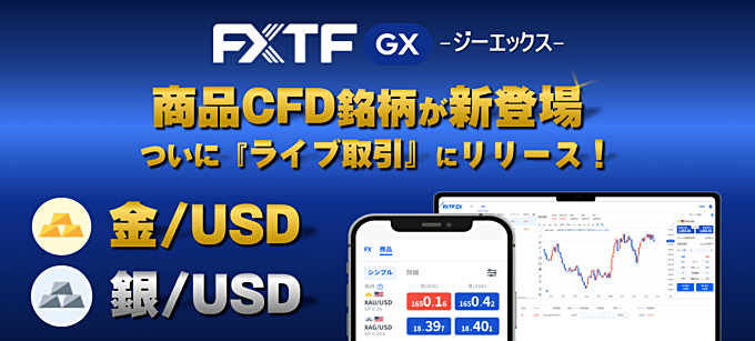 FXTF GXは商品CFD取引(金・銀など)にも対応!