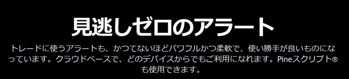 その他にも、クラウド型のTradingViewではPC側とスマホやタブレットが自動的にアカウント情報を同期してくれます。PCで設定したインジケーターや描画したラインをスマホでもう一度引き直すなんて必要もありません。アラートもクラウド上に保存されるサーバーアラートなので、トレーディングビューを開けていなくてもスマホで通知を受け取れます。