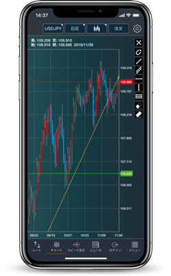 描画した時間軸以外のチャートにもラインが反映され、アプリを一度閉じても描画したラインが保存されます。他の時間軸に反映しかつ保存もしてくれるのは、FXスマホアプリでは貴重と言えます。ライン描画以外にもさまざまな便利機能を搭載。今までにないスマホでのFX取引体験をぜひ味わってみてください。