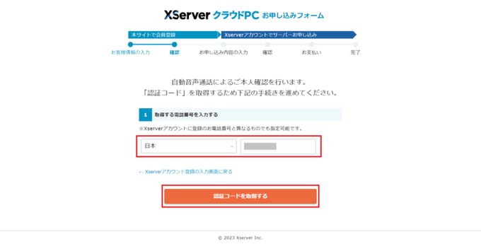 次は本人確認です。電話番号を入力して「確認コードを取得する」を選択。